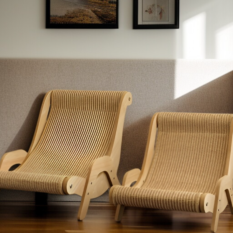 ● 結合貓抓板與沙發功能,木製結構搭配耐磨麻繩抓墊,耐刮不易損壞,陪伴貓咪長時間愉快玩耍。