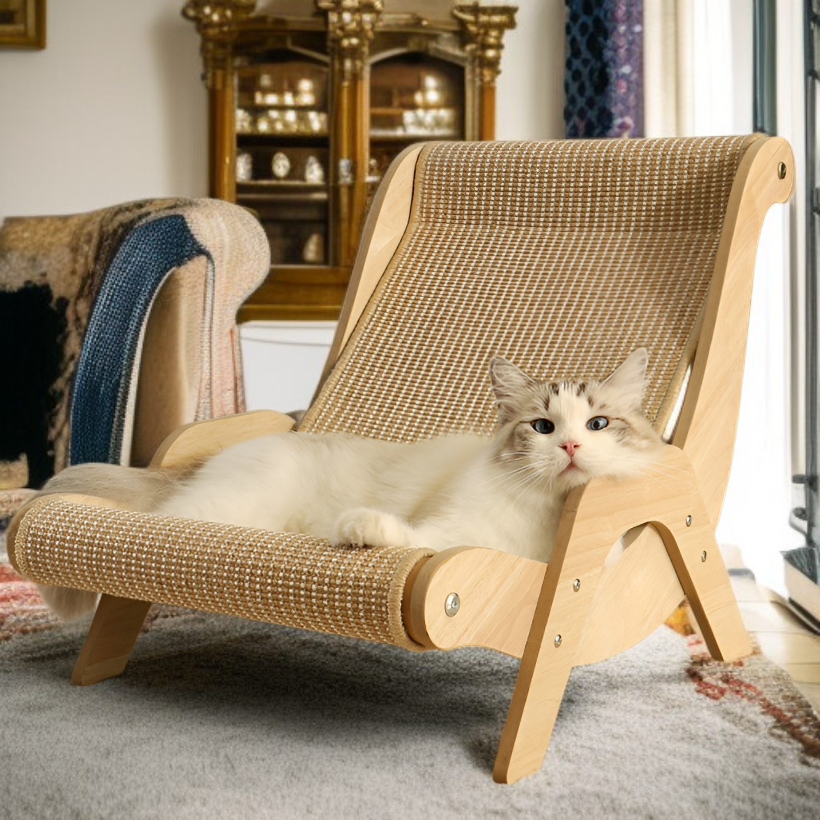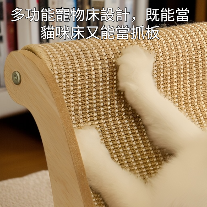 貓咪專用可調式躺椅 貓抓板 貓咪沙發 寵物床 木製麻繩抓墊 耐刮不易損壞貓床