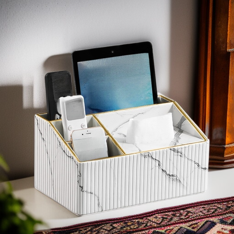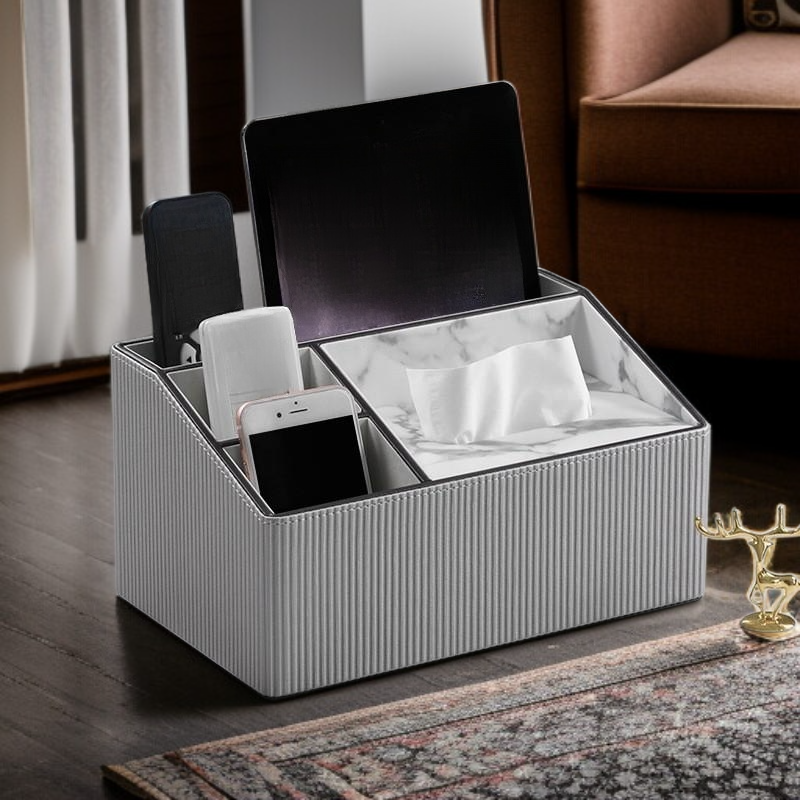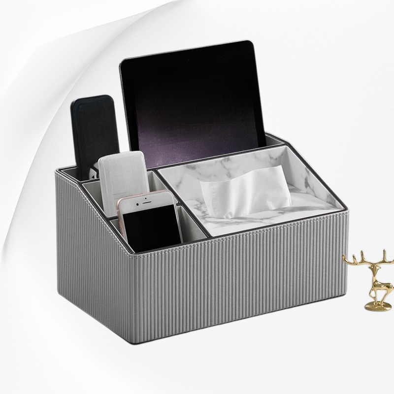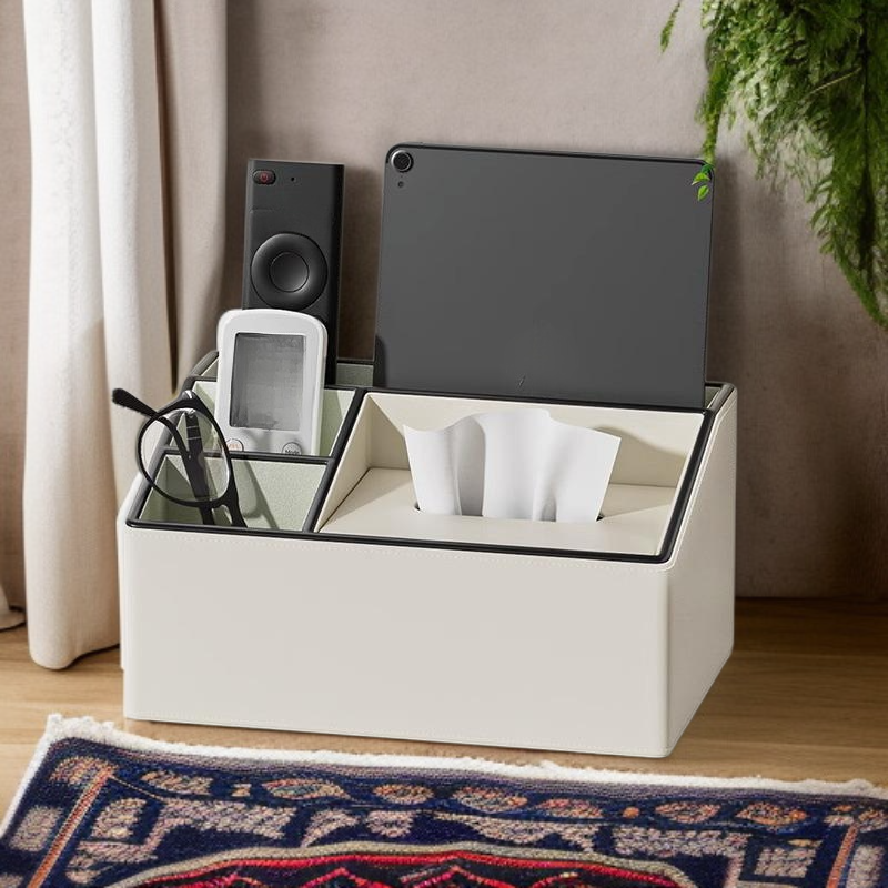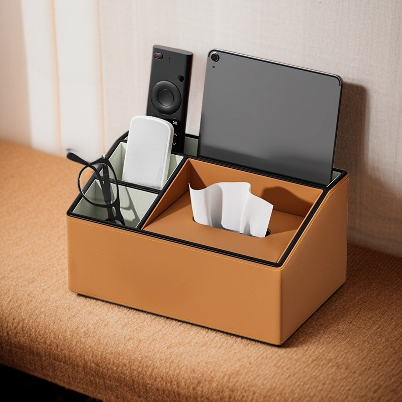 ● 多功能設計,集抽紙盒、遙控器及辦公文具收納於一身,輕鬆打造整潔有序的客廳與辦公空間。